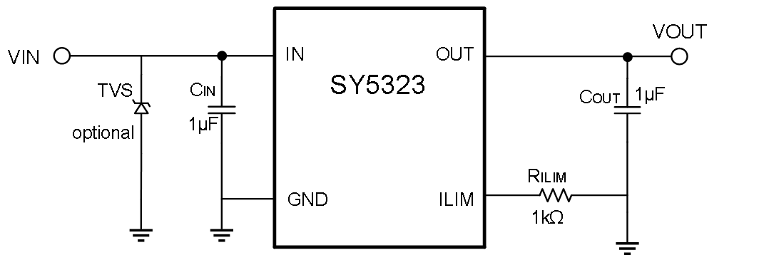 The MOSFET will be turn off in 20uS, if the load current exceeds the limit threshold. The SY5323 enters hiccup mode, until the overcurrent condition removed.