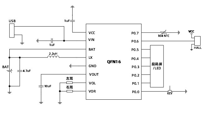 SY8839是專門為TWS耳機(jī)充電倉(cāng)設(shè)計(jì)的全集成SoC芯片。SY8837/8/9內(nèi)部集成了兼容8051指令集的CPU,512字節(jié)RAM, 12k字節(jié)OTP程序存儲(chǔ)區(qū),多通道10位ADC,9個(gè)GPIO,一個(gè)線性充電模塊,一個(gè)Boost升壓模塊、兩個(gè)獨(dú)立放電控制MOS管和耳機(jī)雙向通訊模塊。SY8839芯片VIN管腳支持過(guò)壓保護(hù),最高耐壓可達(dá)35V。 SY8839為QFN16 3*3封裝。