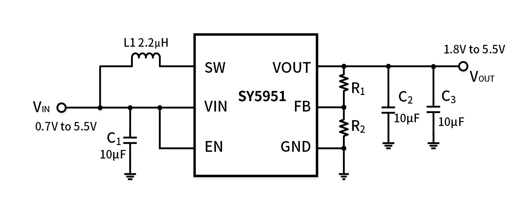 SY5951是一款具有1μA超低靜態(tài)電流的同步升壓轉(zhuǎn)換器。器件間專為由堿性電池、鎳氫充電電池、鋰錳電池或鋰離子充電電池供電的產(chǎn)品而設(shè)計,能夠在輕載條件下高效運行,這對延長電池使用壽命至關(guān)重要。